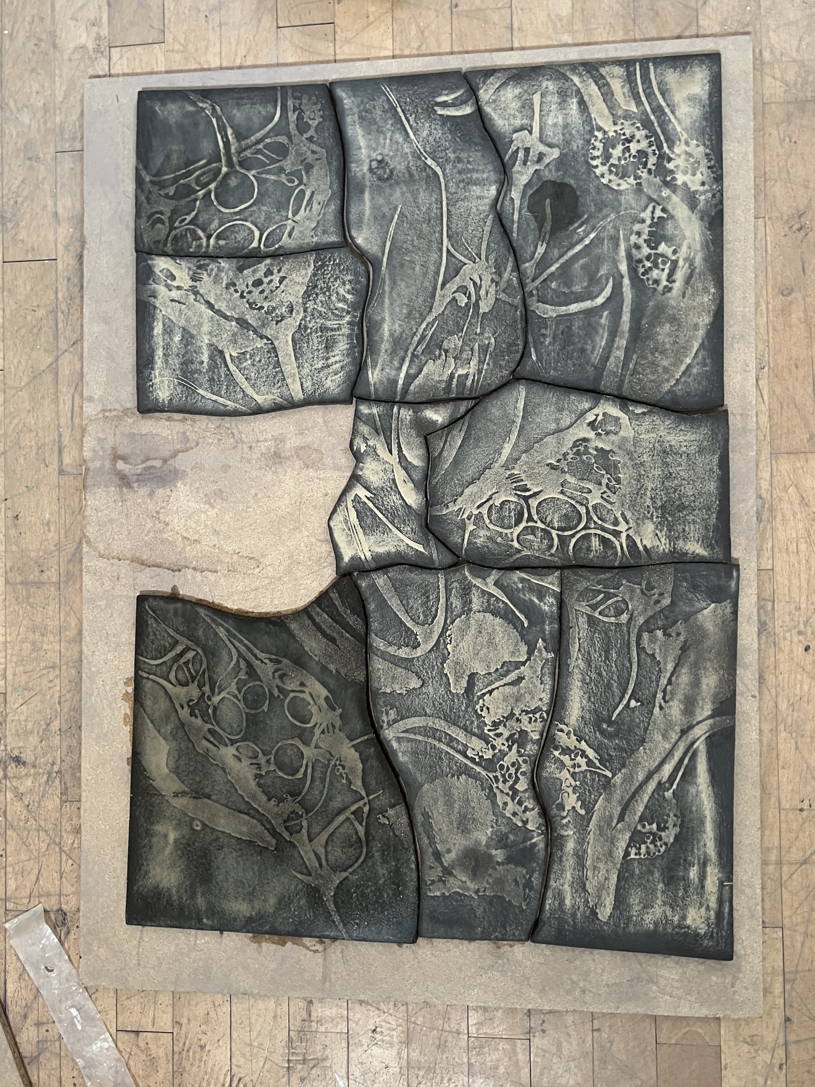Ideální pozornost vůči mé instalaci je rozplétání právě těchto asociací. Identifikovatelnost toho, co reliéf na dlaždici představuje, je ztížená. Je to obraz, CT průřez ledvinami nebo jen mapa místa. Rozkrývání motivu na keramických reliéfech, dohledávání a spojování neurčitých kontur se svým způsobem potkává s přístupem archeologa. Vše se odehrává jen v domnělé rovině metod archeologie.