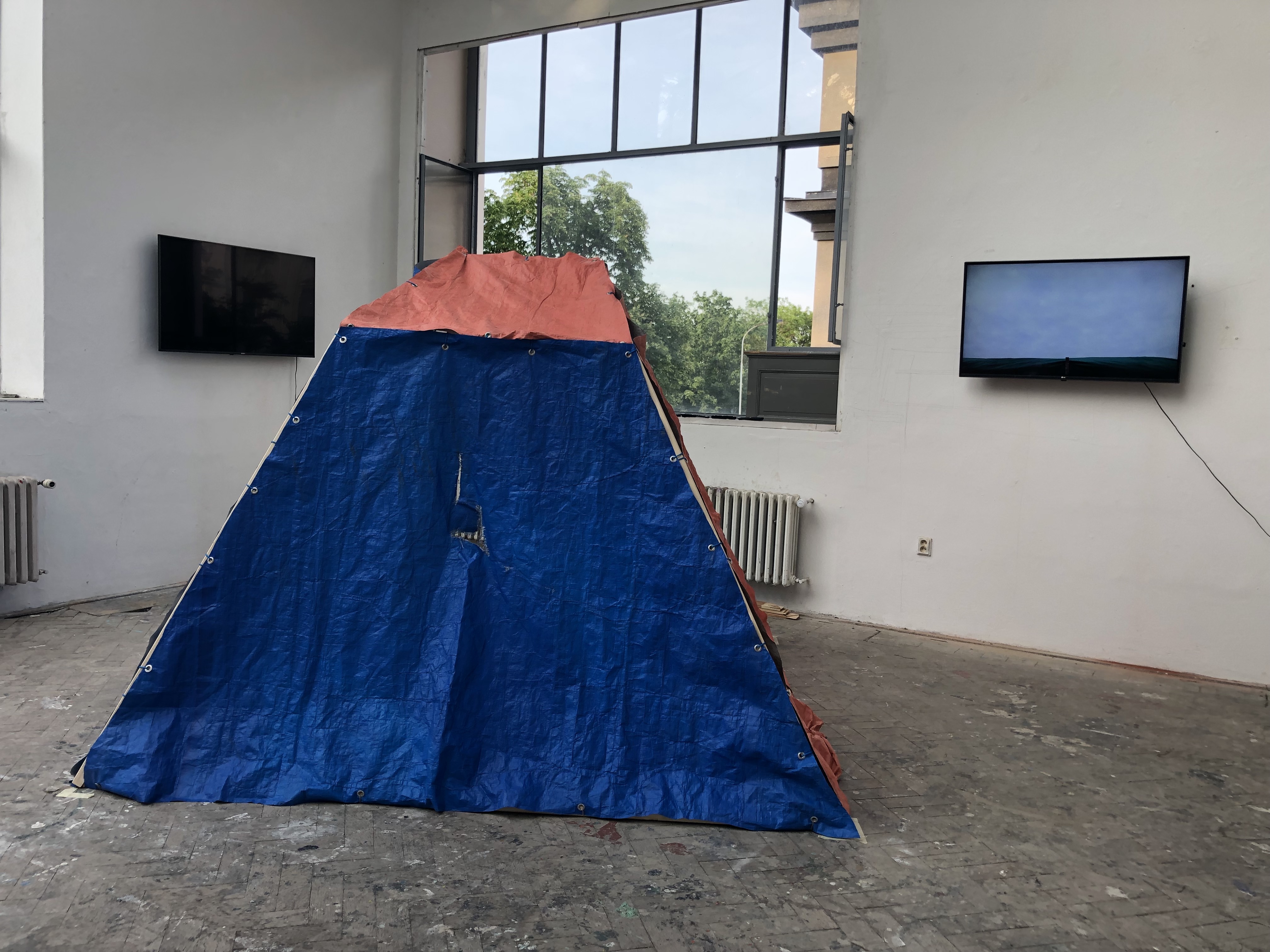 Když jsem koncem zimy jela tramvají na pražských Petřinách, všimla jsem si vily, u které byla rekonstruována střecha. Její trámy byly pokryté obrovskými plachtami vlajícími ve větru. Výjev plachet na mě silně zapůsobil a něčím se mě dotkl. V souvislosti s tímto prožitkem jsem si vzpomněla na úryvek z knihy Jak meditovat od Pemy Chödrön, americké buddhistické mnišky: „V opatství Gampo Abbey máme nad útesy nad oceánem vlajkové stožáry. Neustále experimentujeme a vyvěšujeme tam vlajky, protože k tomu takové stožáry nakonec jsou. Někdy je počasí naprosto klidné a my si těch nádherných vlajek užíváme v poklidu mírného větříku. Jindy ale fičí neuvěřitelně silný vichr a vlajky jsou za krátkou chvilku roztrhané na cáry. Představa vlajkového stožáru a vlajky výborně poslouží při práci s myšlenkami a emocemi, protože vlajkový stožár je stabilní a drží, ale větry pak šlehají vlajkami do všech směrů a trhají je na kusy – a to je obvykle naše potíž. My jsme ty vlajky a vítr s námi smýká ze strany na stranu… Použití myšlenek a emocí samých jako předmětu meditace však znamená prožívat život z perspektivy vlajkového stožáru. V Gampo Abbey si nikdy nemusíme obstarávat nové vlajkové stožáry. I při větrech o rychlosti hurikánu naše stožáry stojí dál, vztyčené na útesech.“ A právě tuto zkušenost s plachtami pokrývajícími střechu i meditace skrze opakované navracení se do přítomné chvíle zhmotňuji skrze svou diplomovou práci.